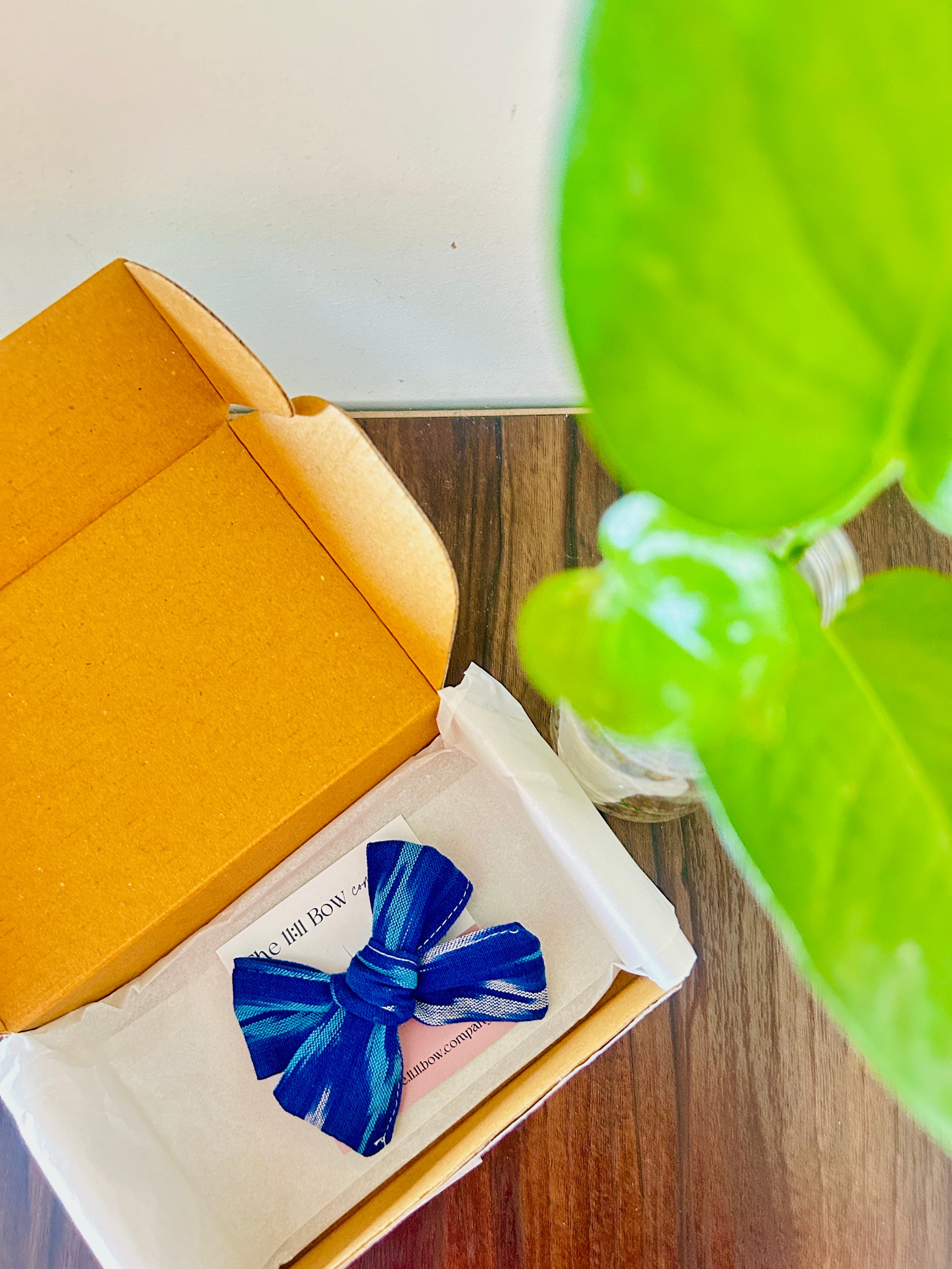 Blue “💙” Ikat pinwheel hair bow clip.